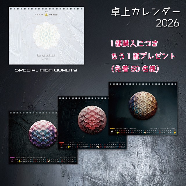 “日付を見る”だけのカレンダーではありません 空間・心・時間の流れを整える、 アートと叡智が融合した特別なカレンダーです 神聖幾何学「フラワー・オブ・ライフ」 古代から伝わる神聖幾何学模様。 宇宙と生命の根源を象徴するとされ、 見るだけで心が整い、空間のエネルギーをやさしく調和へ導きます 九星氣学による月ごとのメッセージ 九星氣学の智慧をもとに、 毎月のエネルギーの流れ・テーマ・過ごし方のヒントを掲載 日々の選択や行動の指針としてお使いいただけます アート × 実用性 美しいビジュアルと深いメッセージ性を兼ね備え、 インテリアとしても、人生の道しるべとしても活躍 ショップ・オフィス・サロン・ご自宅など、 どんな空間にも自然に溶け込みます 掲載されている暦情報 その日のエネルギーを総合的に把握できるよう、 以下の情報を日ごとに一覧で掲載しています 満月/新月/日食/月食 星座/六曜/十干/干支 二十四節気/七十二候 恵方参り/祝日/土用 水星逆行 一粒万倍日/天赦日/母倉日/不成就日/開運日 九星氣学 月盤 日盤切替 ほか 「今日はどんな流れの日か」が一目で分かります エネルギーや暦を日常に取り入れたい方 空間を整えたい方 心の指針となるカレンダーを探している方 サロン・ショップの雰囲気を高めたい方 大切な方への特別なギフトに ■ 商品詳細 サイズ:A3 タイプ:壁掛けカレンダー ※ショップ・オフィス・サロン等での 販売・委託販売をご希望の方もお気軽にご相談ください。 宇宙の叡智と調和のエネルギーを、 このカレンダーとともに、あなたの日常へ。